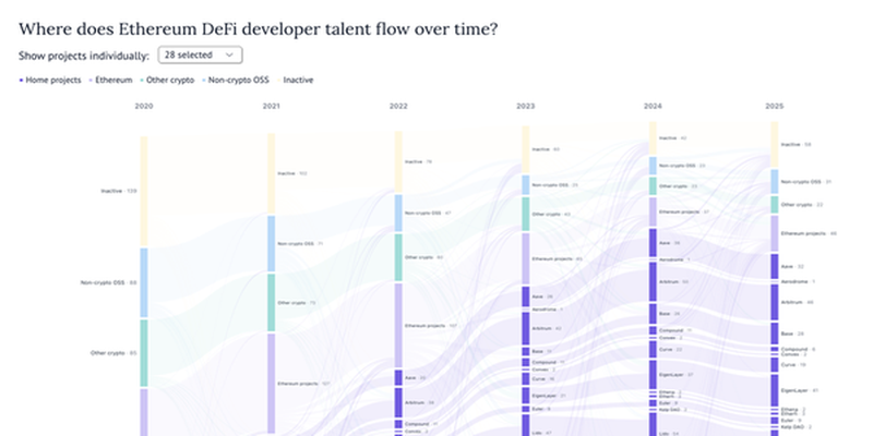 Open-source developer analytics across Ethereum and beyond. Unified data from Open Dev Data, GitHub Archive, and OSO. Explore it in the browser, query via a single API, or just hand it to your agent.